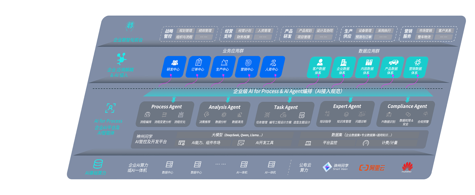 端到端的一站式AI工作空间深度融合了从企业战略规划到日常经营的全流程业务板块,,,定向解决车企内部领域多、、、部门多、、链条长、、、、场景碎片化等难题,,,支持车企快速构建以AI为核心的生产力写作体系,,实现任务执行与AI能力的无缝集成与交互